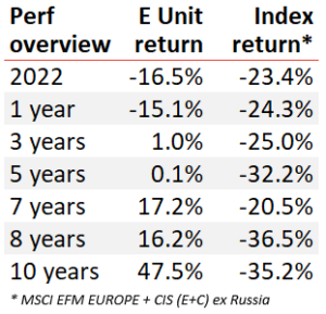 Juba mõnda aega on Avaron Areneva Euroopa Fond olnud oma 1-, 3- ja 5-aastase tootluse põhjal parima tootlusega areneva Euroopa regiooni üleselt investeerivate fondide hulgas. Lisaks sellele ületab Avaron Areneva Euroopa Fondi tootlus septembri lõpu seisuga ka regionaalse areneva Euroopa indeksi – MSCI EFM EUROPE + CIS (E+C) ex Russia – tootlust: