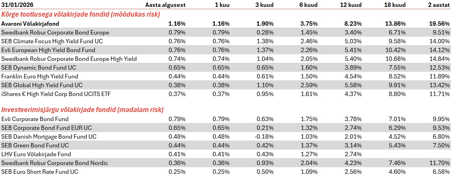 - Avaroni Võlakirjafond – investeerib Euroopa ettevõtete kõrge tootlusega võlakirjadesse